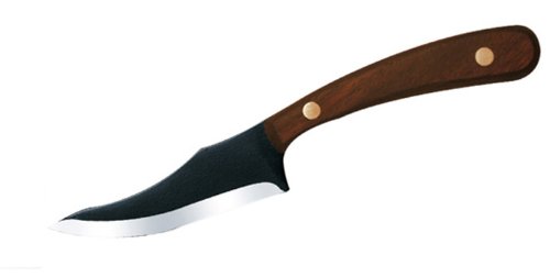 #Handle: Hardwood. Blade Steel: 420 High Carbon Stainless Steel. Blade Finish: UltraBlac2. Blade Thickness: 1/8". Overall Length: 7 7/32". Blade Length: 3.37". Carry System: Hand Crafted Welted Leather Sheath. Made in El Salvador.