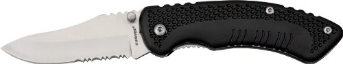 #Humvee couteau Clip Point de dossier. Mesure 11,9 pouces fermé Linerlock. lame 9,6 cm dentelées partiellement boulon acier 440 par pouce. Poignée noire de composition. Clip de poche en acier inoxydable.