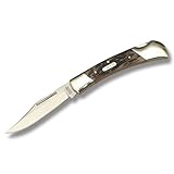 | ✚✚✚ Rough Rider Folding Hunter. Rough Rider pliage os couteau de chasse. Mesure 13 pouces par verrouillage fermé. Lame en acier. Poignée os avec traversin acier.