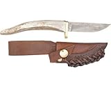 Point de cerf d'argent Damas au hasard. Taille totale : 20,3 cm. 8.2 cm lame en acier forgé de main damasdco. Cerf manipuler avec garde laiton. Gaine de cuir.