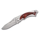 MTech Framelock couteau. Mesure 10 cm de la fermeture. 440 acier lame avec fini nacré et goujons par pouce. Poignée acier avec insert bois d'érable. Clips de poche en acier.