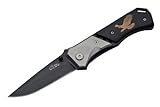 Rite Edge Eagle Linerlock.Rite Edge Eagle Linerlock. Taille fermée 11,4 cm. Lame noire en acier. Traiter avec des pics en bois et support acier. Trou de Clip et bracelet acier.
