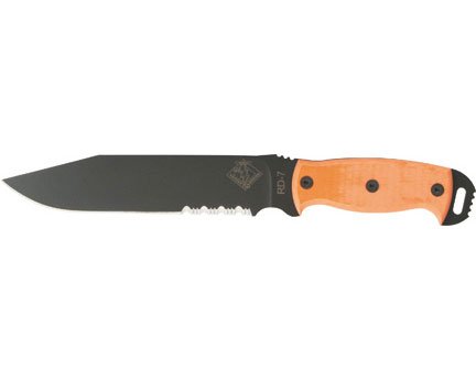 Ranger RD 7 Ready Detachment.?Rangers couteaux RD 7 prêt détachement. taille totale : 33,6 cm. type de zone de liste déroulante d'acier au carbone 5160 19 cm lame avec revêtement de poudre noire. Poignée micarta orange. gaine de nylon noir.
