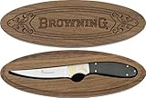 | ✚✚✚ Browning Collectible Woodsman. Browning couteau collectionner Woodsman. taille : 21 cm. Type et les dimensions de la lame : lame lisse 8,9 cm. Matériau de la lame : 440 en acier inoxydable miroir. Gérer le matériel : micarta noir, traversin avec dessin un faggiano doré en acier. Gaine : aucune. Poids : 430 g. Autres : idéal pour un cadeau de collection avec boîte en bois