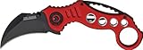 | ✚✚✚ Misc Speed Assisted Karambit R Vitesse assistée couteau Karambit MISC. 13.65 centimètres mesure de linerlock fermé. lame plate de 7,2 cm d'acier avec revêtement noir. Poignée en aluminium anodisé Rouge avec dessin de trou.