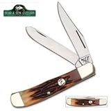 Ours & fils 4ème génération petit trappeur. Mesurant 7,6 cm fermé. Acier au carbone lames 1095. Cerf manipuler avec traversins maillechort.