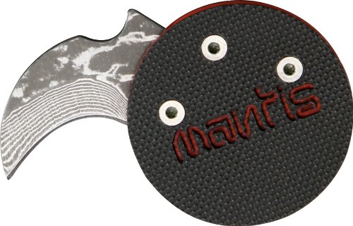 Mantis Civilianaire Coin Knife?Mante Knife Civilianaire couteau pièce. Mesure 4 pouces de lame fermée à Damas par 2 cm. Cadre noir et rouge bi couches G-100 logo de CNC Fiberweave Mantis.